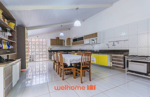 A casa dispõe de 4 banheiros completos com chuveiro elétrico, box de vidro, papel higiênico e sabonete corporal. Na área externa, você encontrará piscina privativa, churrasqueira, rede, espreguiçadeiras, mesa de jantar, freezer e cadeiras para drinks.