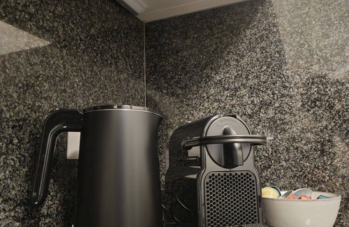 The closed kitchen is equipped for culinary enthusiasts: amenities include a ceramic hob, electric oven, refrigerator with integrated freezer compartment, dishwasher, coffee machine, Nespresso machine, kettle, and a broad range of kitchen utensils, allowing for free experimentation and enjoyment of home-cooked meals. A separate dining area with an elegant table provides the perfect setting for shared meals. The living room, fitted with parquet floors, a comfortable sofa, armchair, and a digital flat-screen TV (35–44 inches) with access to international channels and cable connection, invites relaxation after a day discovering the local area. Music lovers will appreciate the CD player, while the provided internet connection (WLAN) ensures connectivity throughout your stay.