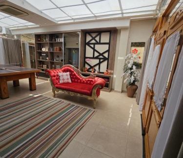 5 miles from Expo Center Norte in São Paulo, Casa no pé da Serra da Cantareira offers accommodations with access to a hot tub. This property offers access to a balcony, free private parking, and free Wifi. The pool features a fence and pool views. Leading onto a terrace with lake views, the spacious vacation home consists of 5 bedrooms. The air-conditioned vacation home also provides a flat-screen TV, a fully equipped kitchen with an oven, a seating area, washing machine, and 7 bathrooms with a hot tub, a bath, and a shower. The property has an outdoor dining area. Guests can relax in the garden at the property. Anhembi Convention Center is 5.9 miles from the vacation home, while Anhembi Sambodromo is 5.9 miles away. Guarulhos International Airport is 11 miles from the property.