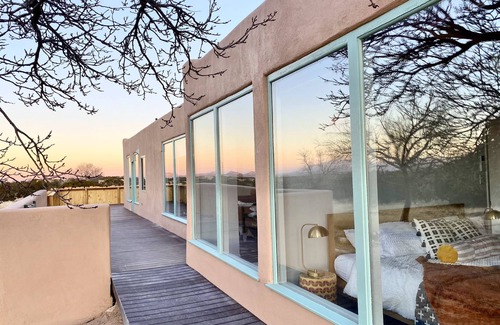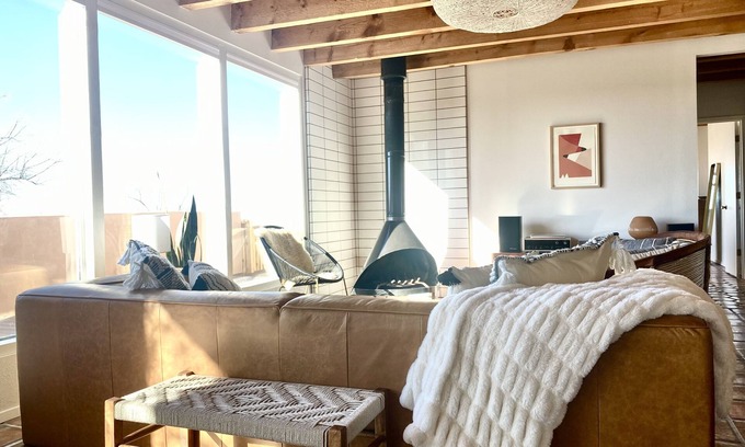 Casa Nopal blends traditional southwest elements with classic mid century accents and original contemporary artworks to achieve an low key luxury aesthetic that will make your stay in New Mexico one of a kind. It is a place to take a pause from the stresses of daily life to restore & reconnect with yourself, your family, and your loved ones. Casa Nopal is designed to create a space for meaningful personal connection and holistic wellness in the high desert of Santa Fe, NM.