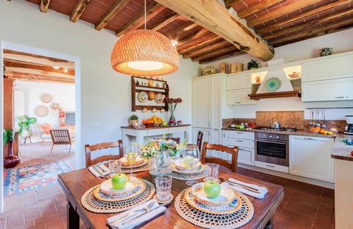 Live the Tuscan dream in the countryside in a restored 14th century farmhouse amongst olive groves in the hills above Lucca. Casa Noscali is perfectly situated to take advantage of long valley views from the private terrace. From the pool, the view looks up to the medieval village of San Gennaro whose church bells blend harmoniously with the sound of rushing water and birdsong.Casa Noscali is one of the six units nestled within the original farmhouse of Il Borghetto, a private gated estate recently restored with all modern conveniences but retaining its original Tuscan beamed ceilings and terra cotta floors. Its sunny corner position with screened and shuttered windows and in- floor radiant heating will make your holiday bright and comfortable in all seasons. Perfect for families or couples, Villa Noscali offers two bedrooms (each with private ensuite bathroom) on the upper floor, sofa and powder room on the main floor, fully equipped modern eat-in kitchen with new appliances and granite countertops, private terrace for al fresco dining, spacious grounds and shared pool. Decorated with a mix of antique and modern furnishings and art, Casa Noscali comes equipped with free WiFi, iPod dock, games, books, hairdryers, pool loungers, umbrellas and towels, barbecues, all linens, fans, washing machine and drying racks on site, and utilities. All are included to make your holiday easy and enjoyable. We offer a comprehensive guide to the local sights, shops, restaurants and wine bars. We can arrange a private chef for a memorable meal or cooking classes and timed tickets for the world class Florence galleries.Lounge by the pool soaking up the Tuscan sun, explore the immediate area via marked hiking trails at your doorstep, follow the local wine and olive oil route for tastings or test your endurance cycling the hills. The historic villas and gardens of the Lucchese patricians of days gone by are also in the general vicinity and open for tours. Napoleon’s sister once owned one, as did the family of the author of Pinocchio. You can see his villa with beautiful cascading gardens in the nearby village of Collodi, also site of a park dedicated to all things Pinocchio.Discover Lucca, a typical Italian small city gem, birthplace of Puccini, famous for opera, and home to the Lucca Summer Festival concerts in the main piazza featuring world renowned popular artists. Lucca is surrounded by a spectacular renaissance wall big enough to have a park all around the top. Join the locals on bike or on foot for an outing gazing down on the terra cotta rooftops. From atop the walls you will have a fantastic view of the medieval towers, cobblestoned streets, churches, a Roman amphitheatre and squares galore which typify the town. Much of it is open to pedestrians only, which makes for a very pleasant city in which to amble. An abundance of great restaurants, wine bars and shopping (including a weekly market and one of the biggest antique markets in Italy monthly) await and we can recommend the best. If a day at the beach is your desire, the Italian Riviera is less than one hour away. Or, catch a boat to the famously scenic Cinque Terre. Of course, the art treasures of Florence can easily be enjoyed for a day from Casa Noscali. Pisa, the hill towns of Chianti, medieval Siena, and the upscale Forte dei Marmi on the sea with designer shopping also offer tantalizing prospects for a day trip in the region. After taking in the scenery, the sights, the food and the wine, relax in the peace of the surroundings at Casa Noscali in Tuscany, a true home away from home for an authentic Italian experience.The location of il Borghetto in San Gennaro is superb. In the medium hills above the Lucca plain and below the historic village of San Gennaro, we offer a piece of solitude in the Tuscan hills. Views of vineyards and olive groves are offered from every vantage point on the property. The newly built property features the stones of the 14th century building that stood on this very spot. Modern inside, the apartment retains the Tuscan charm of handmade terra cotta floors and chestnut beam ceilings throughout. Dedicated shared laundry room.It is advisable to have a car with high suspension to comfortably navigate the 500-meter country dirt road leading to the house.Enjoy a scenic 20-minute hike up the hill to San Gennaro, where you can savour a meal at the local trattoria, Il Corno Rosso. The area is surrounded by well-marked hiking paths, maintained by the Club Alpino Italiano, offering numerous opportunities for exploration.Not included in the rental price:Tourist tax (mandatory and required by local municipality)Midstay and/or weekly cleaning and change of towels and linensBaby cot's linensIncluded in the rental price:Final CleaningTowels and linensElectricityGasWaterInternet WifiHigh chair (upon request at booking)Babycot (upon request at booking)
