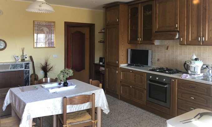 Cute apartment adjacent to the family home, located just outside the center (2 min walk), is spread over a single floor. The area is very calm with greenery on the doorstep. It consists of a kitchen-living room with a sofa, a bedroom with a balcony (double bed and the possibility of adding a cot) and a bathroom. The house is provided with all facilities including a working fireplace and wood stove.We like to welcome you as if you were friends; for any eventuality we are available