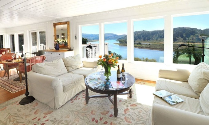 Casa Panama's spectacular setting is overlooking the Russian River Estuary and the Pacific Ocean with breathtaking views and sunny living areas. This well-appointed property is surrounded by thousands of acres of parkland and open space. A haven for restorative retreats, reunions and family gatherings, and for the activity minded, there is bird watching, hiking, biking and kayaking at your doorstep. Four bedrooms and a high-end sofa bed allow you to sleep 10.