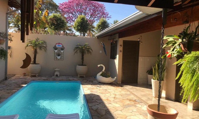 CASA PRIMAVERA- À 2 km do Thermas dos Laranjais is located in Olímpia, just 2.3 miles from Thermas of Laranjais Water Park and 31 miles from Barretos Country Acquapark. This property offers a private pool, free Wifi, and free private parking. Providing a balcony and pool views, the spacious vacation home includes 3 bedrooms, a living room, flat-screen TV, an equipped kitchen, and 3 bathrooms with a shower. This vacation home also offers a patio that doubles up as an outdoor dining area. For added privacy, the accommodation features a private entrance. Barretos Airport is 32 miles away.