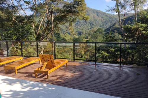 9.2 miles from Bus Terminal in Teresópolis, Casa Reconchego provides accommodations with access to a solarium. With garden views, this accommodation offers a swimming pool. There's a sun terrace and guests can use free Wifi and free private parking. Featuring a balcony with mountain views, this vacation home also comes with a flat-screen TV, a well-equipped kitchen with an oven, a fridge, and a stovetop, as well as 4 bathrooms with a shower. There's also a seating area and a fireplace. A mini-market is available at the vacation home. For guests with children, the vacation home features outdoor play equipment and a baby safety gate. The vacation home has a picnic area where you can spend the day outdoors. Cathedral of St. Peter of Alcantara is 27 miles from Casa Reconchego, while House of Portugal Club is 8.3 miles from the property. Rio de Janeiro/Galeao International Airport is 68 miles away.