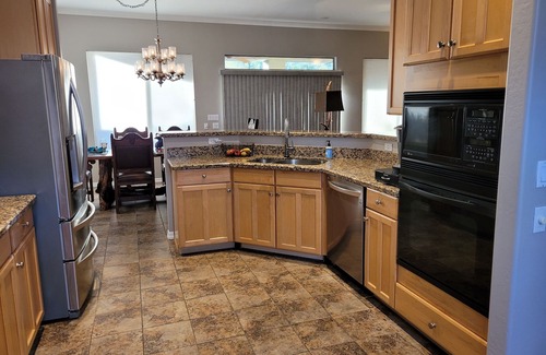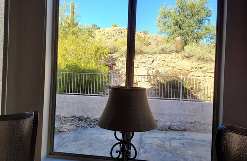 Home is only 35 minutes from Sky Harbor airport. Surrounding cities offer even more restaurants, entertainment, museums, historic areas, shopping, spring training, lakes and casinos. Enjoy your morning coffee, evening glass of wine, or great meals prepared on the new grill as you relax in the beautiful private backyard with large patio area. No neighbors looking back at you, however there may be an occasional deer on the hillside, the views from the master bedroom, living/dining room and patio are stunning. There are several gorgeous Saguaro cacti located on the hillside behind the house, quail that visit almost daily and beautiful sunsets.