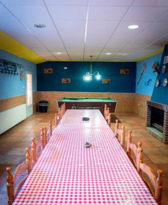 Offering a garden, CASA RURAL ADELA offers accommodations in Odón. This property offers access to a patio and free private parking. The property provides a children's playground and outdoor furniture. Opening onto a balcony with city views, the spacious vacation home consists of 4 bedrooms. Providing a terrace with garden views, this vacation home also offers a flat-screen TV, a well-equipped kitchen with a dishwasher, an oven, and a microwave, as well as 2 bathrooms with a bidet. There's also a seating area and a fireplace. Guests can make the most of the warm weather with the property's barbecue facilities. You can play billiards at the vacation home. Guests can also relax in the shared lounge area. Zaragoza Airport is 88 miles away.