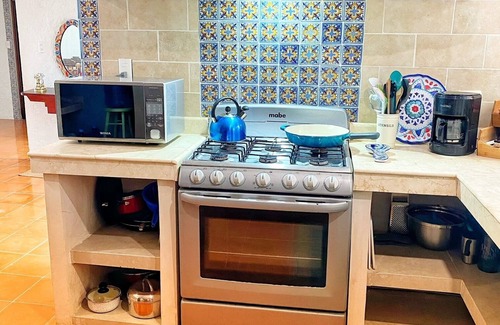 An on site clothes washer and spinner is available for use. A clothesline and pegs are provided. Laundromats are located nearby if you prefer. Please note the washing machine is typical Mexican style which is not what you may be accustomed to in Canada or the USA for example. It is not suitable for large loads and there is no dryer.