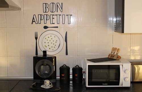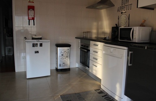 Fully equipped kitchen with hob, oven, microwave, fridge, washing machine, toaster, toaster, etc.
