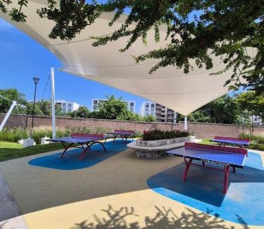 15 miles from Robert Brady Museum in Alpuyeca, Casa Sayil provides accommodations with access to an open-air bath. This property offers access to a balcony, table tennis, free private parking, and free Wifi. During your stay at this apartment, you can use an outdoor swimming pool, as well as a selection of a fitness room and an elevator. Featuring a terrace and mountain views, the spacious apartment includes 3 bedrooms, a living room, flat-screen TV, an equipped kitchen, and 2 bathrooms with a shower. Towels and bed linen are available in the apartment. At the apartment, there's a dressing room for guests to change in. For guests with children, Casa Sayil features an indoor play area and a children's playground. Guests can relax in the garden at the property. Archaeological Monuments Zone of Xochicalco is 7.8 miles from the accommodation, while WTC Morelos is a 13-minute walk from the property. Benito Juarez International Airport is 62 miles away.