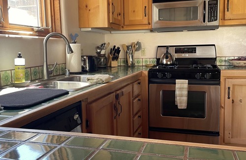 Casa Seco is an Adobe home with Southwestern charm. Saltillo tile floors keep this home cool in the summer, in floor heating keeps it cozy in the winter. The kitchen is fully equipped. Sitting area has leather furniture and an ambient kiva fireplace.