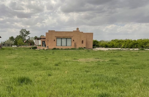 Casa Seco is located on an acre of pasture land and within a short walk to the quaint town of Arroyo Seco. This two bedroom airy home has mountain views from every window surrounded by pasture land and an organic farm. Casa Seco is a short distance to the Taos Ski Valley on one end and the Town of Taos on the other. At least three restaurants are within walking distance along with galleries and shops.
