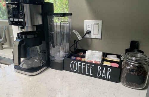 Save some money and prepare your own meals in the fully equipped kitchen. We’ve included everything you need – a gas range/stove, large refrigerator, dishwasher, and microwave. You’ll also find a toaster, hand mixer, blender, and even a Ninja Foodi (a combination air fryer and pressure cooker). Don’t waste your time or money buying a lot of extras - the kitchen is stocked with a variety of oils, spices, cooking spray and plastic bags and wrap.. Grab your morning beverage from our coffee bar and sip it under the pergola in the back yard.
