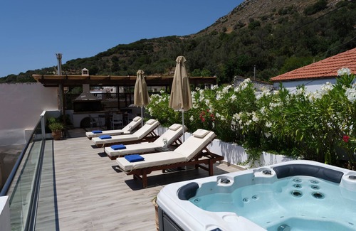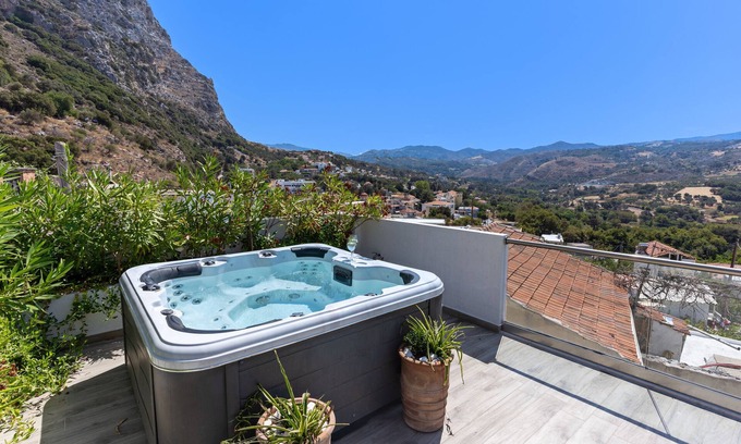 Welcome to Casa Sofia! On the ground floor, you'll find 2 double bedrooms, with a private bathroom en-suited. Could you find a sitting area and a small kitchen on the same floor. Outside you'll find a pool along with sunbeds to relax, or you can have a walk to the garden with local flowers, herbs, and vegetables. On the upper floor, we have one double bedroom and one with 3 single beds, along with one bathroom. The living room is where you can relax by the fireplace and a fully equipped kitchen. You can also have your coffee or wine outside on the balcony and enjoy the quietness and peace that Spili offers. Enjoy the roof terrace with panoramic view, over the village and the mountains surrounding it, a BBQ and a Jacuzzi will add a sense of luxury!