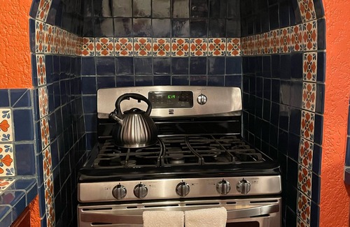 Casa Sunbreak is a unique and beautiful 2 bedroom, 2 bath hacienda in the center of town. It is walking distance to many of the best restaurants and is only 8 blocks from the Malecon. With a private outdoor pool, beautiful murals, and an organic market across the street, you have the beginnings of a marvelous vacation. Casa Sunbreak has high speed fiber optic internet, so you can zoom call your friends while barbecuing on the patio. There is secure off street parking for one car, with a push button entrance to the property.