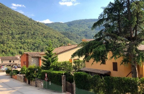 The two-storey house has a nice garden with barbecue and table for meals outdoors. The ground floor includes the garage, a room with a double bed, a bathroom and a room with a double sofa bed. The first floor has a spacious living room with wood stove and views of the mountains, kitchen, a single room, a double room and a bathroom. In addition there is a small attic from where to observe the stars of the Albanyà sky.