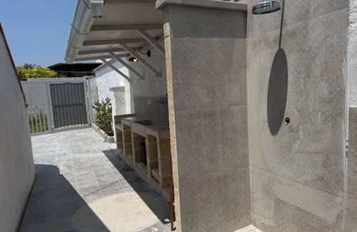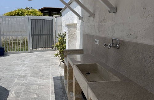 Freshly renovated apartment with independent entrance a stone's throw from the sea; minimalist style furnishings where modernity and tradition blend perfectly to give guests an authentic experience without sacrificing comfort. Built-in bathroom with large walk-in shower, large double bedroom with comfortable wardrobe and single bed/sofa. Living room with compact and completely retractable kitchenette, French sofa bed and dining area. A large outdoor space with outdoor kitchen and large outdoor shower to fully experience the summer. The icing on the cake is access to the panoramic terrace with sea view, solarium equipped with tables, chairs and deckchairs and equipped with a shower, where you can take refuge to sunbathe or organize a dinner at sunset.