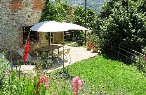 House "Casa Vacanza Cascina Lovera", 650 m a.s.l surrounded by meadows, fields and vineyards. 4 apartments in the property. 3 km from the centre of Murazzano, 10 km from the centre of Dogliani, 20 km from the centre of Barolo, in a secluded position on a slope, 56 km from the sea. For shared use: property 15'000 m2, terraced garden (not fenced) with lawn and plants, natural garden, swimming pool (8 x 4 m, depth 140 cm, seasonal availability: 04.May. - 04.Oct.). Outdoor shower, terrace, garden furniture, planted inner courtyard pool maintenance by the owner/gardener. In the house: table football. Parking at the house on the premises. E-charging station. Shop 3 km, supermarket 10 km, bus stop 200 m, railway station "Bra" 34 km. Please note: the owner lives on the same property.