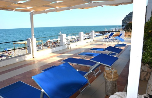 "La Terrazza" e' una casa vacanza situata in una posizione invidiabile sul mare. Appartamento accogliente, completo di arredo e climatizzato. La casa può ospitare 2 persone ed è dotata di bagno con doccia e bidet, cucina completa di pentolame, TV-sat , WiFi gratuito (50 Mbps), disponibile biancheria da letto e bagno. Nessun costo aggiuntivo sui servizi offerti. Veranda coperta per la vostra colazione con vista mare. Spazi verdi, il meraviglioso terrazzo-solarium provvisto di lettini sdraio per ogni ospite da cui si gode una esclusiva vista sulla costa. Dal terrazzo-solarium è possibile scendere direttamente sulla spiaggia con scalinata privata. Area dedicata per il barbecue. Tutti gli spazi esterni sono in comune con altri ospiti tranne la tettoia vicina al pozzo che è di uso esclusivo dei proprietari. Luogo ideale per famiglie che vogliono condividere con noi il piacere del sole e del mare. A pochi metri dalla nostra location troverete un rinomato ristorante, un wine-bar, ed il porticciolo dove potrete prenotare l’escursione in barca per la visita meravigliosa costa garganica e delle grotte marine. Il centro abitato dista circa 1 Km. La nostra proprietà è il punto di partenza ideale per avvincenti escursioni nel Parco Nazionale del Gargano. Vi attenderanno luoghi mistici come Monte Sant'Angelo e San Giovanni Rotondo e percorsi naturalistici nella Foresta Umbra fino a Vieste. Che dire: Noi ci siamo, se volete potete essere dei nostri!