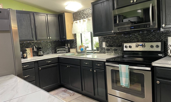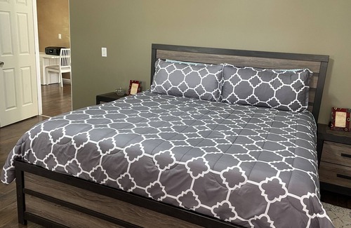 Even better than the pictures!!! 4 Beds W/clean sheets/fresh smell. 2 Bath w/shower equipped w/enough elements for bath/clean towels. kitchen equipped with electric stove/refrigerator, microwave/electric cooking elements. food/species waiting to be use. Laundry room dryer & washer including soap & softener. Office room w/printer, WiFi access. livingroom the heart of the house ready to enjoy.