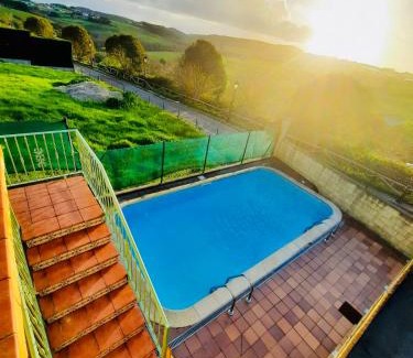 Featuring a garden, Casa Villa Mey offers accommodations in Candás. This property offers access to a balcony, free private parking, and free Wifi. The pool features a fence and pool views. Offering a terrace and mountain views, the spacious vacation home includes 6 bedrooms, a living room, cable flat-screen TV, an equipped kitchen, and 4 bathrooms with a walk-in shower and a bidet. Towels and bed linen are featured in the vacation home. There's also a seating area and a fireplace. Guests at the vacation home will be able to enjoy activities in and around Candás, like fishing, hiking, and walking tours. Guests can also warm up near the outdoor fireplace after a day of cycling. Playa de Rebolleres is a 13-minute walk from Casa Villa Mey, while Plaza de la Constitución Oviedo is 23 miles away. Asturias Airport is 21 miles from the property.