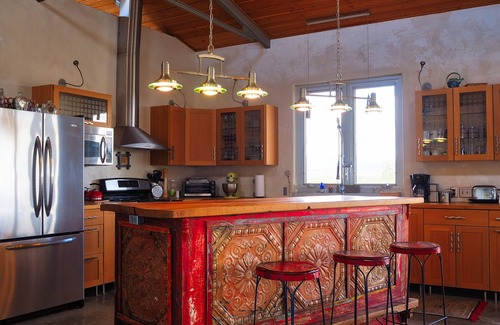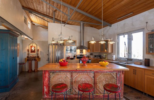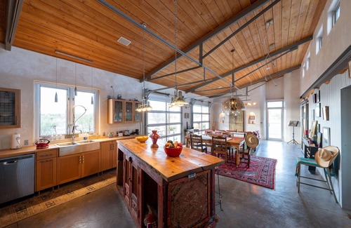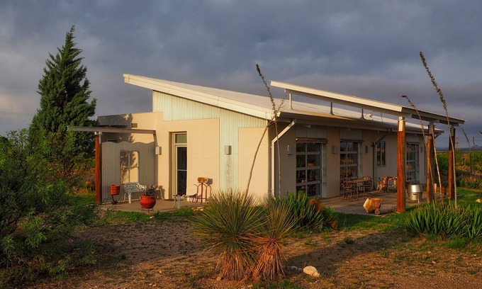 A unique modern custom built home. Contemporary architecture in the desert. This open air house is a visual treat, both the interior and the landscape, full of delightful surprises and subtle details. Complete with 3 bedrooms and 2 baths, Casa Wilma can comfortably accomodate up to 6 people. The modern kitchen has all the comforts you will need to prepare any meal, gourmet or otherwise. Expect a one of a kind stay. Be amazed and enjoy the unobstructed views of the Glass Mountains and Iron Mountain. Relax on the patio with a glass of wine or Topochico and enjoy the wildlife, birds, deer, foz and javelina~just to name a few. In a short 3 minute drive, you will be in downtown Marathon where you will find shopping at Evans Gallery and the V-6, as well as Daniel Kleppers Gallery. Stop by the famous White Buffalo bar for a famous Margarita.