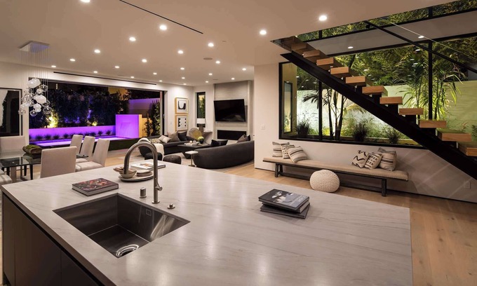 Experience a stunning villa that combines Mediterranean charm and modern elegance in Beverly Grove. Enjoy an expansive rooftop deck with breathtaking views, an outdoor shower, and a hot tub. The spacious terrace features a romantic pergola, perfect for al fresco dining, while the lush yard and sparkling pool create a serene oasis. This newly built home offers luxury and comfort for an unforgettable stay.