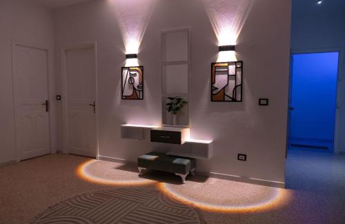 A recently renovated apartment, CASABLU Apparte - Terrasse avec vue Sunset offers accommodations in Nabeul. This property offers access to a balcony, free private parking, and free Wifi. The accommodation offers full-day security and luggage storage space for guests. Offering a terrace and garden views, the spacious apartment includes 3 bedrooms, a living room, satellite flat-screen TV, an equipped kitchen, and 2 bathrooms with a bidet and a bath. Towels and bed linen are offered in the apartment. The property has an outdoor dining area. A mini-market is available at the apartment. For guests with children, the apartment provides a baby safety gate. Nabeul Beach is 1.6 miles from CASABLU Apparte - Terrasse avec vue Sunset, while Neapolis Museum is 1.5 miles away. Enfidha-Hammamet International Airport is 40 miles from the property, and the property offers a paid airport shuttle service.
