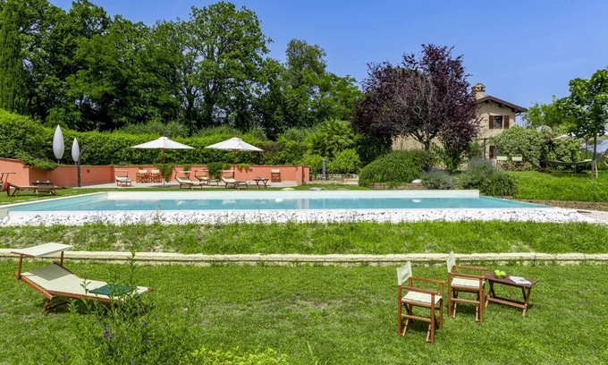 Best-rates for the Monteciccardo villa starts from $413 per night with includes Laundry, Pool, Designated Smoking Area, Bedding/Linens, Wellness Facilities, Fireplace/Heating, Internet, Kitchen, TV, Private Pool, Balcony/Terrace, Barbecue/Outdoor Cooking, Child Friendly with all other amenities. Perfect for Weddings is committed to ensuring every guest experiences a comfortable and extraordinary stay, whether planning a romantic getaway, a honeymoon, a pet-friendly stay, or celebrating with the entire wedding party.
