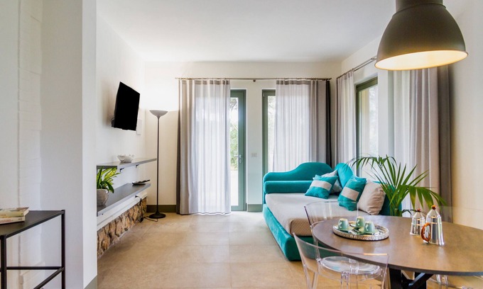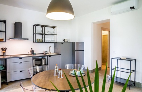 The apartment "Apartment 2" is located within the holiday home "Casale Lorenzo Apartments". Just 100 metres from the beach, it is the ideal accommodation for a relaxing getaway. The 60 m² property consists of a living room with kitchen, a sofa bed and a single bed, 1 bedroom and 2 bathrooms, and can accommodate 5 people. Additional amenities include air conditioning, WiFi, a shared garden and a private veranda.