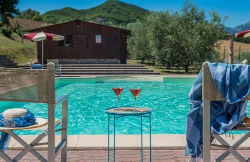 Casale Lucy is a private villa with pool in Le Marche, located in a territory of breathtaking hill views and at a short distance to the beaches of the Adriatic coast. It is suitable for those who wish to enjoy the quiet of the countryside with their friends or family. The property, which is entirely fenced-in, offers its guests a wide porch with tables, chairs and sofa, perfect for al fresco dining and a well groomed garden with panoramic pool with Roman stairs.