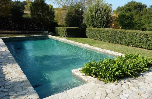 In a private reserved area of the garden that measures 9 x 5 sqm and 2.5 sqm deep surrounded by olive trees.