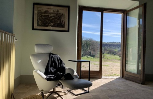 This enchanting country residence is located approximatel10 km away from the characteristic town of Orvieto. Set on a private estate overlooking the Umbrian countryside, this charming stone villa offers a stunning panoramic view and a large garden with a properly furnished infinity pool and patio area, bbq included. The location is quiet and completely secluded, in the middle of unspoiled nature, surrounded by olive trees, vineyards and fields .