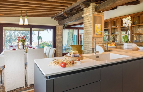 Please notice that photos are taken in spring, therefore flower blossoming, and the colours of the gardens' grass could be different at the moment of your arrival at the villa.