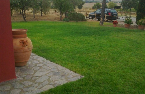 In the Tuscan Maremma, a small house with a swimming pool (4x12 m) near the medieval village of Magliano in Toscana (4 km) and the Argentario sea (25 km) with views of the village and the surrounding hills. The house is located on one floor, in a secluded and quiet position and has ample parking. In addition to the surrounding lawn and gazebo, there are a box with 4 bicycles and another spacious box (Length 3 meters, width 2 meters and height 3 meters) for pets but can not enter the house. It surrounds a land of 5 hectares cultivated with the vineyard and the olive grove. Internally, it consists of a large living room with fireplace and kitchen, 3 bedrooms, and 2 bathrooms. It is ideal for four people but it is possible to organize another 4 additional beds. The master bedroom is located on the veranda (equipped with the special blackout curtains) which has a nice double bed. The other two bedrooms have single beds. The 4 additional beds are: a double bed wardrobe placed in the living room and two bed poufs to be placed where you want. the pool is equipped with 4 sun loungers, a sitting area and an outdoor shower - it is not heated. Other useful equipment of the house: