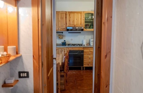 Il bagno è moderno e funzionale, e l'ampio giardino esterno offre uno spazio perfetto per rilassarsi, giocare o cenare all'aperto, godendo dell'aria fresca e del panorama circostante.