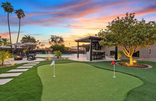 Escape to your private backyard oasis! Take a dip in the heated pool (optional fee of $75/night), challenge friends to a game of bocce ball, practice your swing on the putting green, or gather around the fire pit for evening cocktails. The wet bar with a built-in grill makes outdoor entertaining a breeze.