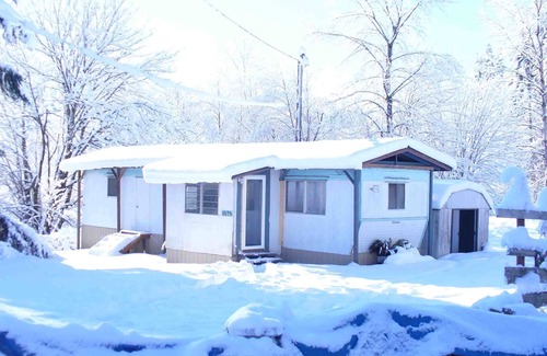 Single wide trailer sleeps 4 with kitchenette. King bed in main living area, private room with Queen bed. Located in the upper Skagit watershed, near mountain lakes, waterfalls, rivers, hiking, biking, swimming, eagle sightings and much more!