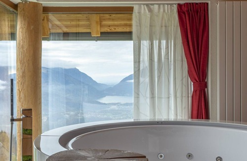 The "Casera" lodge has been recently built and offers luxury, wellness, nature and relaxion. It is located in Chies d'Alpago, an area dotted with interesting villages, surrounded by the Belluno Pre-Alps and by many meadows and woods, hills and slopes that rise from the lake of Santa Croce towards the Cansiglio forest.The Chalet is equipped with every comfort and furnished with particular attention to detail. Perfect for a couple or a family or groups of friends who want to experience nature without ever having to give up modern comforts such as wifi, web TV, and private in-room Jacuzzi. The “Casera” lodge consists of a large and bright living area with a fully equipped kitchen with stove, oven, fridge and dishwasher. The room has a large wooden table for convivial lunches or dinners, a beautiful fireplace and and a living area with a large and comfortable sofa and an LCD TV. On the ground floor there is a complete bathroom equipped with a washing machine. On the upper floor there are two beautiful bedrooms, very spacious and bright, each with a private bathroom with shower and the possibility of adding a third bed. One room has a large Jacuzzi right next to the double bed, comfortable for relaxing enjoying the spectacular panoramic view, thanks to the large window overlooking the valley. To complete and enrich the offer a large garden furnished with a wooden table and benches and a barbecue for enjoyable outdoor lunches.A truly complete offer full of every comfort for a vacation reach of luxury, relaxation and nature.Possibility to organise parties, but with prior authorisation and with supplement.City tax of €0,80, per person, per day, for maximum 10 days, excluding children up to 13 y.o, to be paid at arrival.