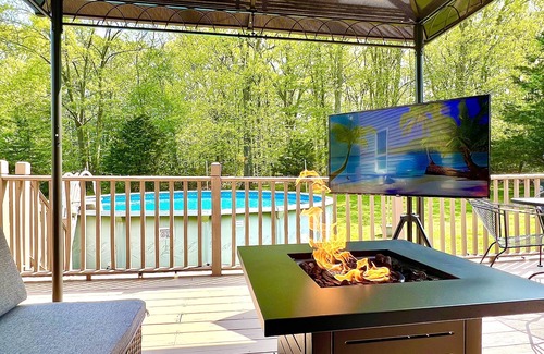 Enjoy our game room where you can sing karaoke, play over 3,000 classic games and write on our giant chalk board wall. Outside enjoy swimming in your own private pool, play a game of corn hole and hang on our deck for a relaxing time.