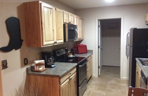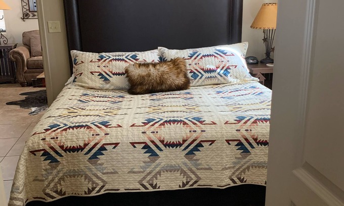 This western Casita was built in 2014. Brand new King size mattress in 2021. Very convenient location 3 blocks from downtown. Close to restaurants, entertainment, the museum, the theatre, and shops. Tile floors and the kitchen is fully equipped with dishwasher, stove, fridge, microwave, The unit also has a washer and dryer. This is a one bedroom with a king size bed and a queen size sleeper sofa in the living room. Bathroom has a shower. Professionally decorated. Cute little fenced and private back yard with barbecue and seating. Located less than three blocks from entrance to Simpson Arena and very close to Rancho Rio if you need to board a horse and/or rope. Check out our sister western casita right next door (VRBO # 643288) if you are traveling with friends or family.