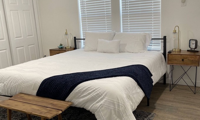 This home was completely renovated, 2022. The first bedroom has a king size bed, the second has a queen size bed. Both bedrooms have wall mounted TVs, lamps with USB ports, closets with drawers, split unit and units in the bedrooms with a/c and heat remote controlled. Equipped kitchen with new appliances. Laundry room has washer, dryer, iron and ironing board. Bathroom is fully stocked with toiletries, hair dryer, and towels.