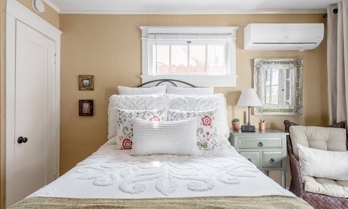 This cozy and remodeled casita offers a private entrance, quaint full kitchenette, and private patio/yard with grill. It features 580 sq. ft of living space, a restored vintage clawfoot soaker tub with shower combo, AC/heat, walk-in closet, private laundry, and streaming televisions with local channels in each bedroom. All three mattresses are very comfortable. Casita Gundry comfortably sleeps 1 to 3 adults, with a maximum occupancy of 5 guests (max occupancy may feel a bit snug.) Up to 2 pets allowed with pre-approval from host. For accurate pricing, please be sure to enter the correct stay dates, number of overnight guests and pets. Contactless check-in and accommodations. Using a virtual key, guests are welcome to self-check-in and access the casita’s smart lock through their own mobile phones. However, guests also have the option to be greeted by a host upon arrival. 2 driveway parking spaces (tandem/uncovered) exclusive to guests. There is no dedicated inside eating area. We encourage dining al fresco on the private garden patio. Since neighborhood is residential, there is a 10 pm noise curfew. No smoking inside. No parties. Compliant with enhanced cleaning, disinfecting, and hosting reservation guidelines. Local points of interest and recommendations can be found in the Casita Gundry Home Manual. If any concerns, carefully study floor plan of Casita Gundry provided at time of booking and feel free to reach out to the on-site host (Lars) for local tips/recommendations or with questions.