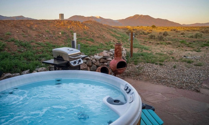 "Casita De Alfarero: Blissful gateway to rich Southwestern culture and breathtaking landscapes. Ideal for couples or small families, our pet-friendly adobe sanctuary is a haven of modern comforts amidst earthy allure. Easy reach to the thrilling Taos Ski Valley and majestic Rio Grande Gorge bridge. New hot tub for divine relaxation!"