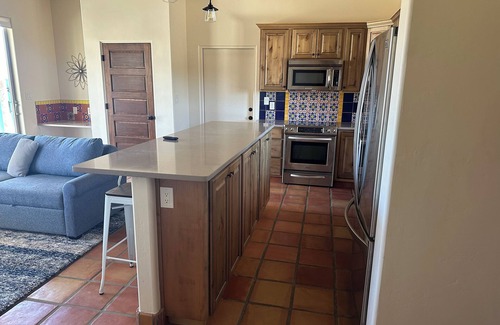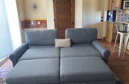 Casita De Cuervo is a beautiful detached casita to have all to yourself. This spacious & quiet space is very close to popular hiking trails and feels remote while being less than 15 minutes from I-25, NMSU, and both hospitals. This home has a full kitchen, king bed, open living room with a couch that transforms into a futon, work nook, bar stool dining, & much more. Enjoy the sunrise over the Organ Mountains on the back porch and breathtaking sunset views over the city. Dogs are welcome - there is an enclosed side yard with tall walls for your use.