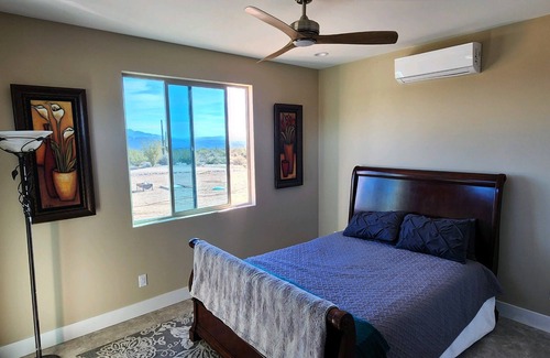 Cozy casita adjacent to the main house on a one acre lot. New construction, A/C, separate sleeping area from living area. Queen bed with mattress topper. Futon couch to provide additional sleeping accommodation. Wireless internet - 4G speed, 40-60 mb average, 10 mb upload average. Fire TV in living room. Small kitchenette that includes a refrigerator, toaster, coffee maker, crockpot, hot plate, etc. There is a wall mounted folding table that can be utilized for a desk or eating area. Steps away from walking trails in the beautiful Rio Verde area. Off the beaten path with very little traffic and wildlife all around. Closest grocery store is roughly 20 minutes away.
