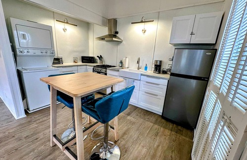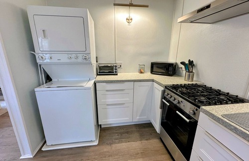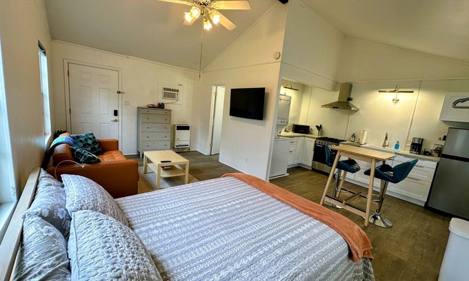 Sleep peacefully in the comfy queen bed, cook in the well-equipped dine-in kitchen, and freshen up in the full bathroom. We can provide an air mattress upon request to accommodate an additional guest.