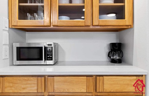 The stylish kitchen is a home cooks delight. Beautifully appointed with granite counters and quality appliances, it's well-equipped with everything you need. Just bring your food, and you'll be set!