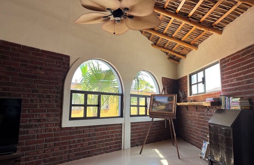 Your whole group will enjoy easy access to everything from this centrally located Rustica Mexican hacienda style casa,provides true flavor of traditional Mexico. 2 bedrooms/3 full bathrooms with upper open space Mezzanine for Yoga, Art, Music, play or simple relaxing in the beauty of space! Hammock hung for siesta, Bicycles and SUP boards available for guest use. It’s a 1 mile street walk or short cut beach stroll (at low tide) to the Historical city center. Enjoy the Magical Puebla of Loreto.