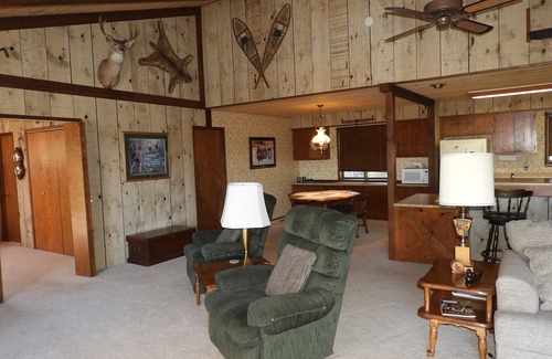 Fisherman's paradise: Hat Creek, Pit River, Fall River, Big Lake, Baum Lake, Crystal Lake, Lake Britton. Private home sits on bluff over Hat Creek with steps from deck to water's edge. Two bedrooms include 4 twin beds, den or 3rd bedroom with sofa sleeper and sun room with futon. Outdoor recreation area for summer or winter. Enjoy wildlife and landscape photography. One mile to the PCT trail. Waterfall at McArthur Burney Falls Park is breathtaking. Snowmobile parks, sledding, downhill/cross country skiing offered at Mt. Shasta an hour an half drive. Those with the exploring spirit visit the Subway Caves located in Old Station. Fall River Mills boasts a golf course with beautiful mountain vistas. Mt. Lassen 1 hour journey well worth the trip. Not recommended for young children. Bluff and river behind house. Only shows available in VRBO if renting 3 nights or more.